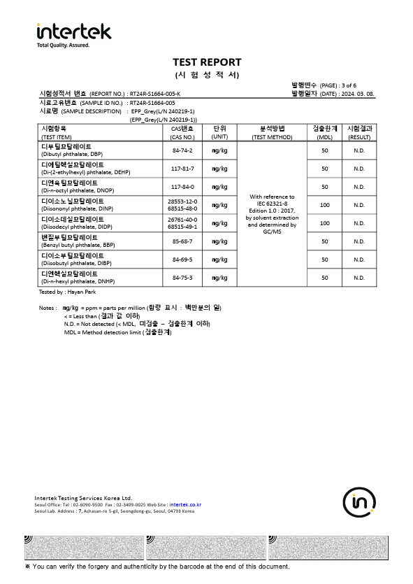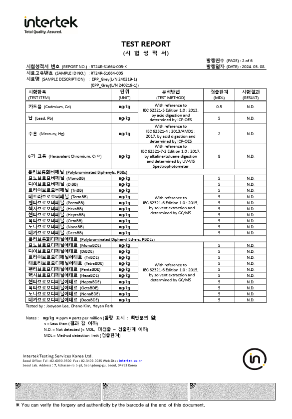 EPP 벌통 중금속 시험 성적서