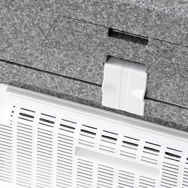 뚜껑 고정클립을 같이 제공하여 바람이나 흔들림에도 뚜껑이 이탈할 가능성이 없으며, 로프지지대에 턱을 만들어 열고 닫음에 있어 편의성 추가